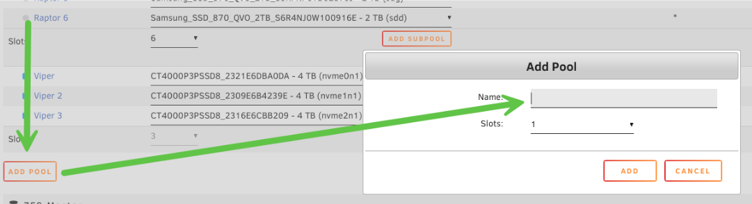 Unraid 将 ZFS 支持 vdevs 称作子池。大多数用户不需要这些,但有经验的用户可能会使用: